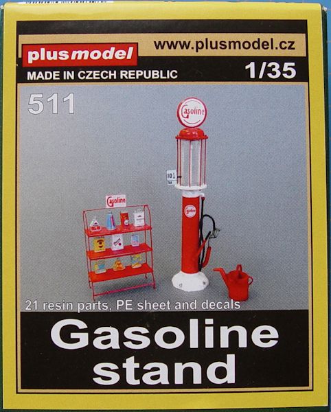 Plusmodel eine einfach gehaltene kleine Tanksäule für ein Diorama herausgebracht. Die Zapfsäule besteht aus fünf sauber aus Resin gegossenen Teilen. Auch ein Klarsichtteil- der Schauzylinder- gehört dazu. Der Zapfschlauch entsteht aus einem kleinen Stück Bleidraht.
