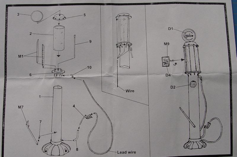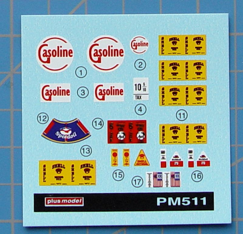 Es liegt eine kleine Bauanleitung im A5 Format dem Bausatz bei. Der Decalbogen enthält Beschriftungen für die Öldosen, die Kannen und die Werbung für die Zapfsäule.