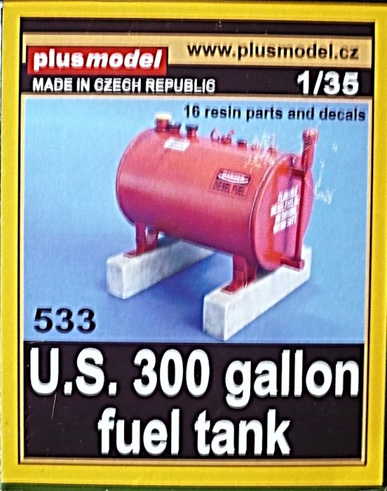 Die Firma plusmodel hat uns wieder mit einer interessanten Neuheit für die Freunde des Dioramenbaus überrascht. Für die Lagerung flüssiger Treibstoffe gibt es jetzt einen stationären 300 Gallonen Tank. Recherchen im Internet ergaben, dass in den USA eine Vielzahl von Herstellern diese Tanks in sehr ähnlicher Bauweise für den militärischen und zivilen Bereich produzieren.