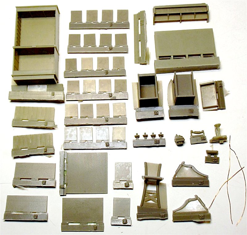 Die Büromöbel können sowohl im Militär- wie auch im Zivilbereich verwendet werden. Nach Öffnen der Stülpverpackung befinden sich ca. 50 sauber gegossene Resinteile, die durch eine Teilenummernangabe auf dem Gießansatz leicht zuzuordnen sind, im Bausatz.