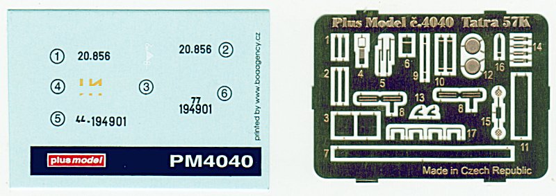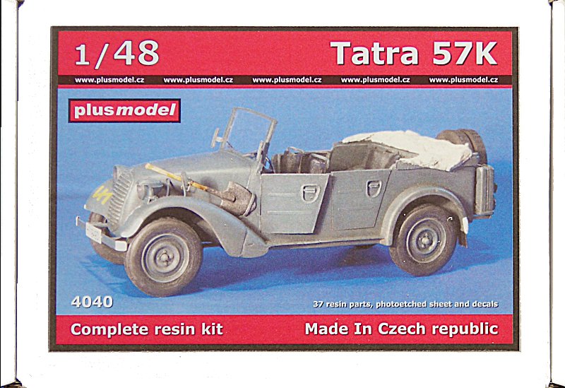 Bausatz: Plusmodel hat, wie eigentlich alle Hersteller, einen Faible für heimatliche Vorbilder. Nachdem vor einigen Jahren der Tatra 57K in 1/35 erschien, folgt nun der kleine Bruder in 1/48. Trotz des Vorgängers hat es sich als ziemlich schwierig herausgestellt, etwas umfangreichere Vorbildinfos zusammenzutragen. Was leider auch für fotografische Belege aus der Zeit des Zweiten Weltkriegs betrifft, jedenfalls bei meiner begrenzten "Bibliothek" und des damit verbundenen Ausweichversuchs auf das weltweite Netz.