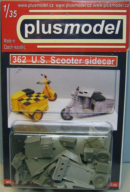 Als willkommene Neuheit im 1:35 Militär-Zubehörmarkt bringt der tschechische Kleinserienhersteller Plusmodel aus einer neuen Reihe: Cushman Auto Glide Military Scooters, einen U.S. Scooter sidecar heraus. Nach dem erscheinen des solo Scooters war es eine logische Konsequenz das nun die Beiwagen Version folgt.