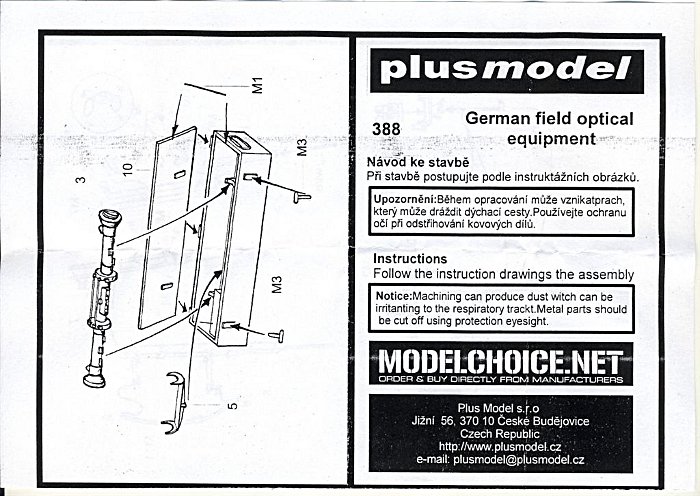Bausatz: Als willkommene Neuheit im 1:35 Militär-Zubehörmarkt bringt der tschechische Kleinserienhersteller Plusmodel einen Satz Feld-Entfernungsmesser heraus. Der Bausatz enthält Bauteile für drei verschiedene Entfernungsmesser und eine Transportkiste.
