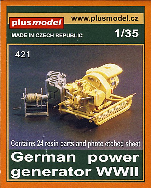 Zum Modell: Als willkommene Neuheit im 1:35 Militär-Zubehörmarkt bringt der tschechische Kleinserienhersteller Plusmodel einen kleinen Feld-Stromerzeuger heraus. Einige Bilder vom Original befinden sich auf der Seite Fahrzeuge-der-Wehrmacht.de, unter dem Link: Stromaggregate