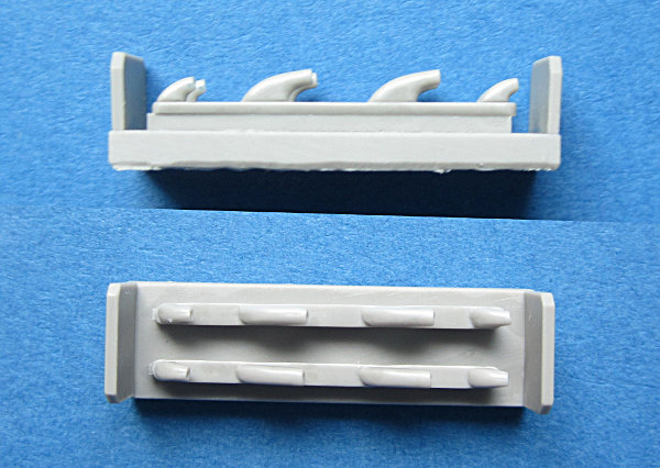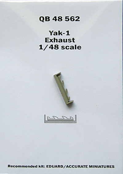 Für die Verschiedenen Editionen der Jak-1 von Accurate Miniatures (z.B. Eduards Limited Editions Jak-1, Jak-1b) hat Quickboost mit diesem Satz Auspuffstutzen eine einfache aber wirkungsvolle Aufwertung bereitgestellt. Mir bereitet das Ausbohren dieser Rohre oft Schwierigkeiten. Gerade bei so dünnen Stutzen ist schnell ist das Loch nicht ganz mittig oder gar der Rand beschädigt. Daher finde ich dieses Set sehr gut. Die Anwendung ist denkbar einfach: nur vom Gussblock abtrennen und anstelle des Bausatzteils verwenden.