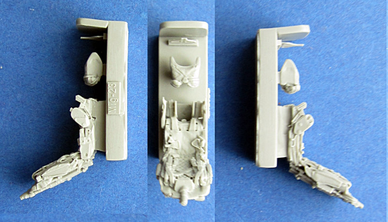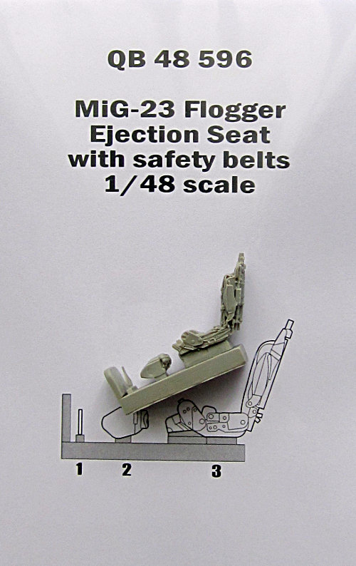Für den Bausatz der MiG-23 von Trumpeter (FirstLook MiG-23M/FirstLook MiG-23MF) hat Quickboost diverse Detailsätze heraus gebracht. Dieser Satz ersetzt den Schleudersitz von Trumpter und auch eines eventuellen Zubehörsatzes, wenn man die angegossenen Gurte bevorzugt.