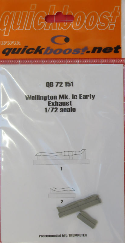 Für den TRUMPETER-Bausatz der Vickers Wellington Mk. Ic in 1/72 hat Quickboost ein Resindetailset herausgebracht. In der typischen Tüte befinden sich nur zwei Auspuffrohre. Im Gegensatz zu den neueren Sets gibt es noch eine Bauanleitung.