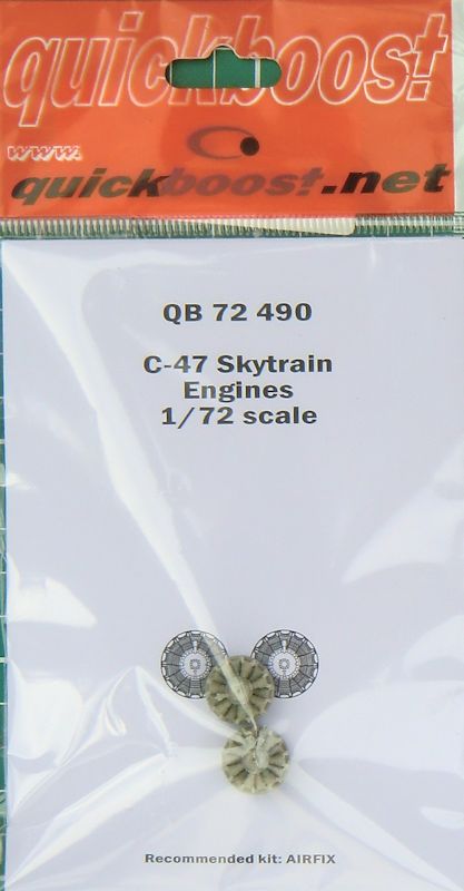Für den recht neuen Bausatz der Douglas C-47 Skytrain von Airfix in 1/72 hat Quickboost ein Detailset mit zwei Motoren aus Resin herausgebracht. Diese ersetzten die entsprechenden Teil des Bausatzes direkt. Die beiden Motoren sind tadellos gegossen und besitzen schöne aufmodellierte Strukturen. Das Ganze muss nur noch ordentlich bemalt werden.