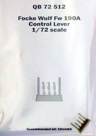 Für den eduard Bausatz der Fw 190A in 1/72 hat Quickboost ein Set mit drei Steuerknüppel aus Resin herausgebracht. Diese ersetzten das entsprechenden Teil des Bausatzes direkt. Die Steuerknüppel sind tadellos gegossen und besitzen schöne Strukturen. Das Ganze muss nur noch ordentlich bemalt werden.