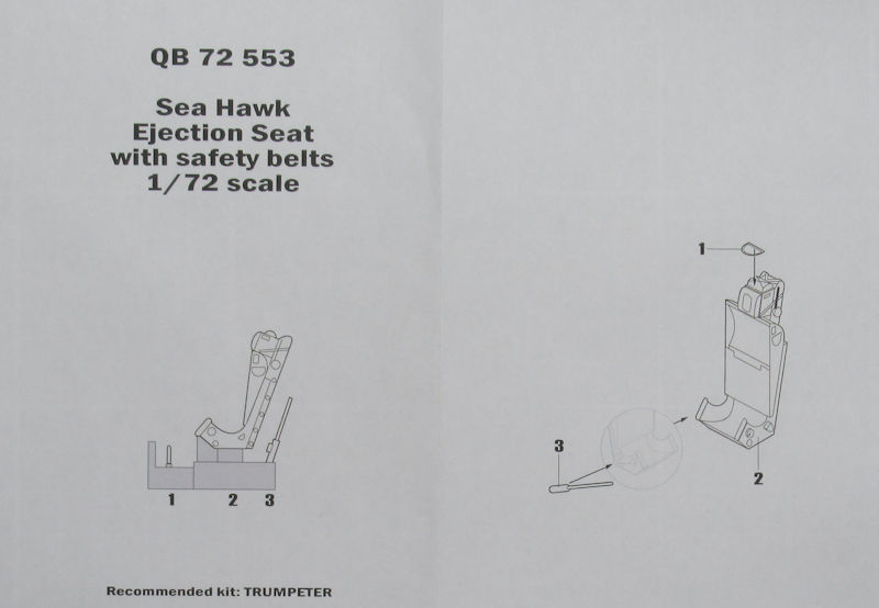 Für die Hawker Sea Hawk in 1/72 von TRUMPETER hat Quickboost einen Schleudersitz herausgebracht. Es gibt drei sauber gegossene Resinteile. Mit Hilfe der kleinen Bauanleitung lässt sich dieser Schleudersitz leicht zusammenfügen.