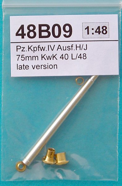 Zur Ergänzung des Panzer IV Ausf.J liefert RB Model ein passendes Geschützrohr. Es ist aus Aluminium gedreht und die Mündung ist hohl gebohrt. Es liegt eine vierteilige Mündungsbremse aus Messing bei. Der Gesamteindruck ist hervorragend. Für eine bessere Baubarkeit ist es sinnvoll, das Plasikrohr zu teilen und den in den Panzer führenden Teil an das Alurohr zu kleben.