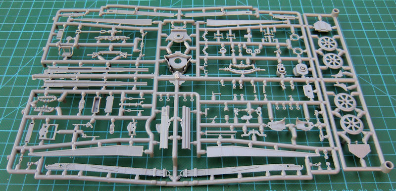 Bausatz: RPM aus Polen liefert leider nur sehr sporadisch Neuheiten. Hier gibt es ein recht ungewöhnliches Vorbild und zugleich recht universelles Modell. Es kann in beiden Weltkriegen eingesetzt werden. In der attraktiven aber unpraktischen Schüttbox befinden sich gut verpackt zwei hellgraue Spritzlinge mit insgesamt 115 gut abgespritzten Teilen, einem Decalbogen und die gut gemachte Bauanleitung.