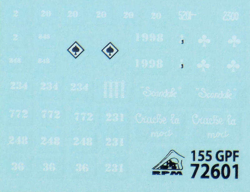 Der kleine Decalbogen ist tadellos im Register gedruckt. Die Bemalungsvarianten gibt es z.T. auf der Kartonrückseite mehrfarbig oder zweifarbig in der Bauanleitung.