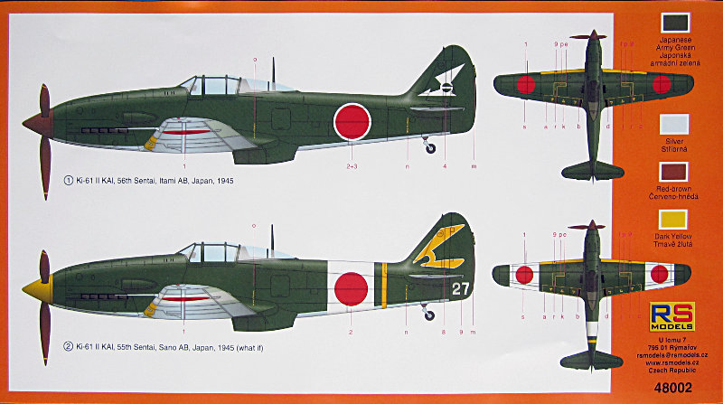 Vorbild: Zu den Vorgängermustern habe ich bereits in meiner Vorstellung des Hasegawabausatzes der Kawasaki Ki 61-I HEI "Hien" etwas geschrieben. Bei der Ki 61-II handelt es sich um einen Prototypen mit 10% größer Flügelfläche und einem etwas anderen Tragflächenprofil. Ein Ha-140-Motor mit 1.120 kW (1.500 PS) Startleistung wurde eingebaut. Die Motorhaube wurden neu gestaltet und der Laderlufteinlauf war länger. Eine neu gestaltete Windschutzscheibe mit einem zusätzlichen Segment wurde weiter vorne montiert. Um die die Sicht des Piloten zu verbessern, wurde die Kanzel hinter dem Schiebedach neu gestaltet.