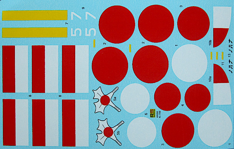 Die Bauanleitung enthält schwarz-weiße Zeichnungen auf Kopierpapier und zeigt jeweils die Optionen für die Ki79A und Ki79b. Die Bemalungsanleitung ist ebenfalls ein A4-Faltblatt wobei hier 3 Bemalungsvarianten und ein Titelblatt mit Vorbildinfos und der Abbildung der Gießrahmen die 4 Seiten füllen. Die japanischen Bemalungsvarianten finde ich ganz spannend. Hier sind die Decals nicht verdruckt und gut verwendbar. Das Nachbilden der Bemalungsvariante A wird aber nicht ganz einfach.