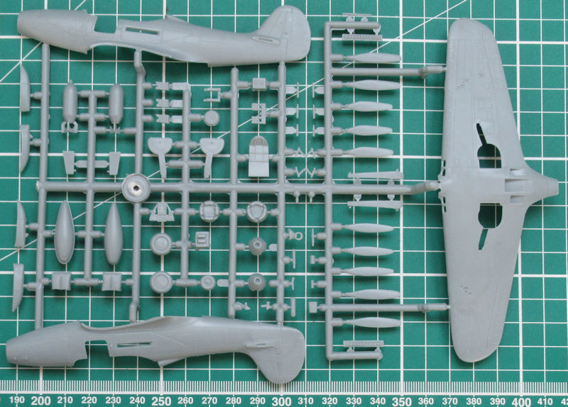 Bausatz: Hier gibt es eine Wiederauflage einer Bell P-39Q von RSmodels. Die Spritzgussteile sind schon aus dem Bausatz aus 2013 bekannt. Es ist nur zu verständlich, dass RSmodels aus Tschechien erneut eine P-39Q herausbringt. Diese letzte Serienversion erlangte zum Ende des WK II eine große Verbreitung. In der attraktiven aber unpraktischen Schüttbox befinden sich gut verpackt zwei graue Spritzgussrahmen mit 91 Teilen, einen Klarsichtrahmen mit fünf Teilen, zwei Resinteile, einen Decalbogen und die gut gemachte Bauanleitung.