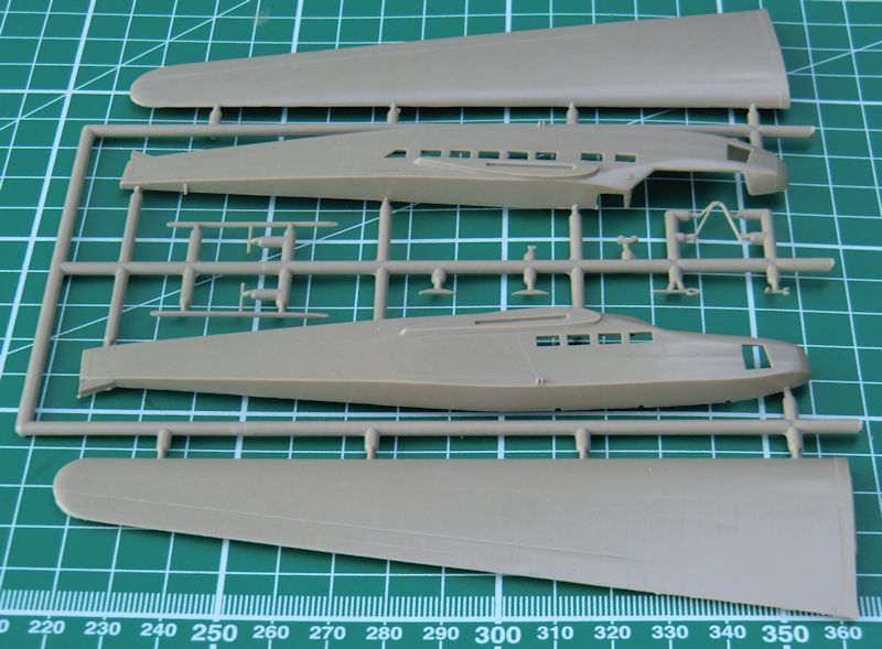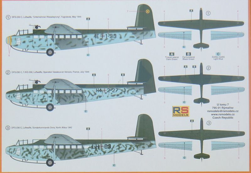 Bausatz: RSmodels liefert hier den DFS 230C im Maßstab 1/72. Diesen gab es vor mehr als 20 Jahren schon mal von HUMA. Leider sind deren Produkte nicht mehr neu lieferbar. So ist dieser neue Bausatz von Robert Schneider sehr willkommen. Diesen gibt es in zwei verschiedenen Verpackungen. Der zweite Bausatz enthält Markierungen für einen beim Unternehmen "Eiche" benutzten Segler.