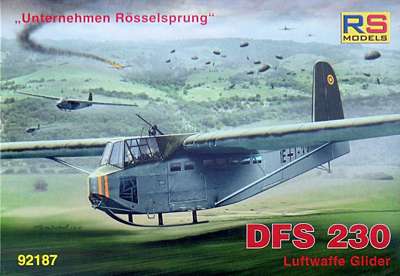 Vorbild: Die DFS 230 war der bekannteste deutsche Lastensegler der Luftwaffe im WK II. Er wurde unter Leitung von Hans Jacobs bei der Deutschen Forschungsanstalt für Segelflug (DFS) in Darmstadt entwickelt. 1937 flog der erste Prototyp. Die Serienproduktion der DFS 230 A begann 1939 bei Robert Hartwig in Sonneberg. Bis Ende Juni 1940 wurden 109 Exemplare ausgeliefert. Insgesamt entstanden 1603 Exemplare in fünf Versionen. Die letzten DFS 230 C-1 wurden im Juli 1943 bei Mráz im damaligen Protektorat Böhmen und Mähren gefertigt.
