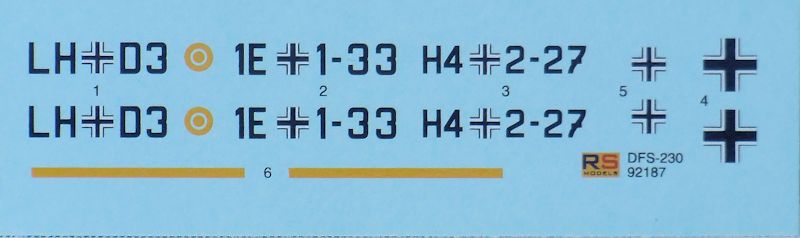 Fazit: Ein sehr gut gemachter Bausatz der DFS 230 in 1/72 von RSmodels mit vielen Details. Er ist auch weniger erfahrenen Modellbauer zu empfehlen.