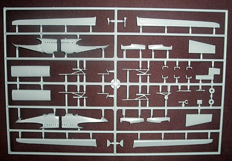 Der zweite Spitzrahmen enthält die Tragflächen, Höhenleitwerk, Räder, Fahrwerksteile und die Vorderseiten der Motoren. Die Räder sind zwar nur im entlasteten Zustand dargestellt, aber im Zubehörhandel gibt es Resin Räder ( z.B. von Steelworks).