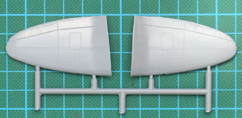 Das Cockpit wird mittels Spritzgussteile ordentlich detailliert. Die Innenseiten des Rumpfes sind gut strukturiert. Ein paar Sitzgurte sollten noch ergänzt werden. Für die Darstellung der Motorsektion gibt es alternative Bauteile der B-0 oder B-1. Sehr fein ist die Auspuffanlage bei beiden Versionen gestaltet. Beide Hauptfahrwerksräder sind leicht abgeplattet modelliert. Das sieht gut aus.