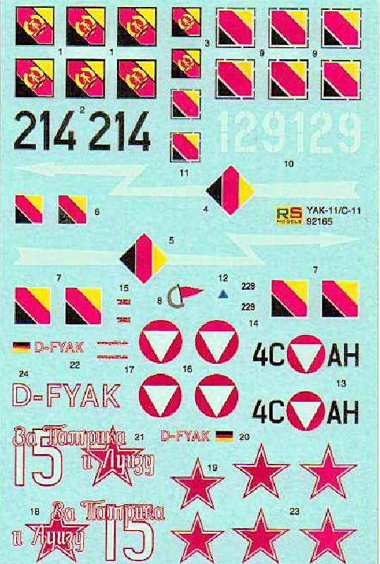 Bemalungsvarianten:Der kleine Decalbogen ist sauber gedruckt und bietet die Abzeichen für fünf Jak-11.