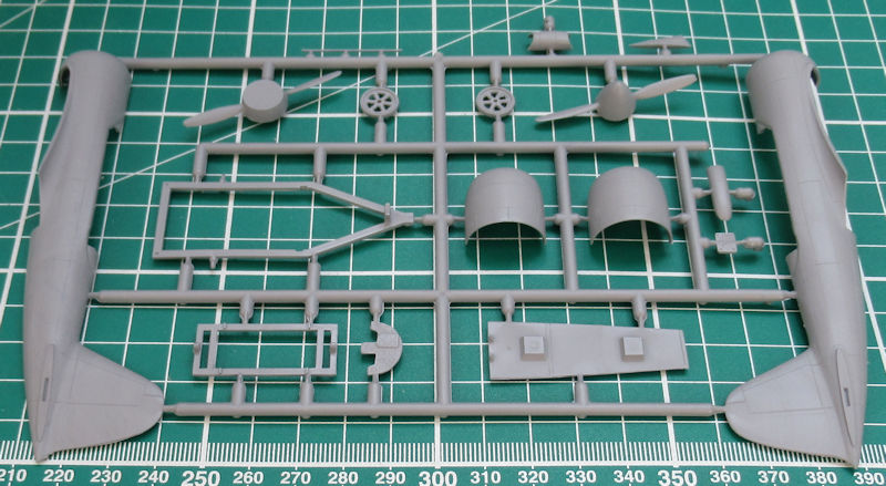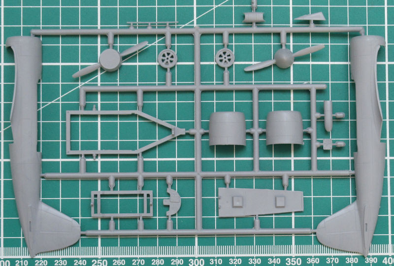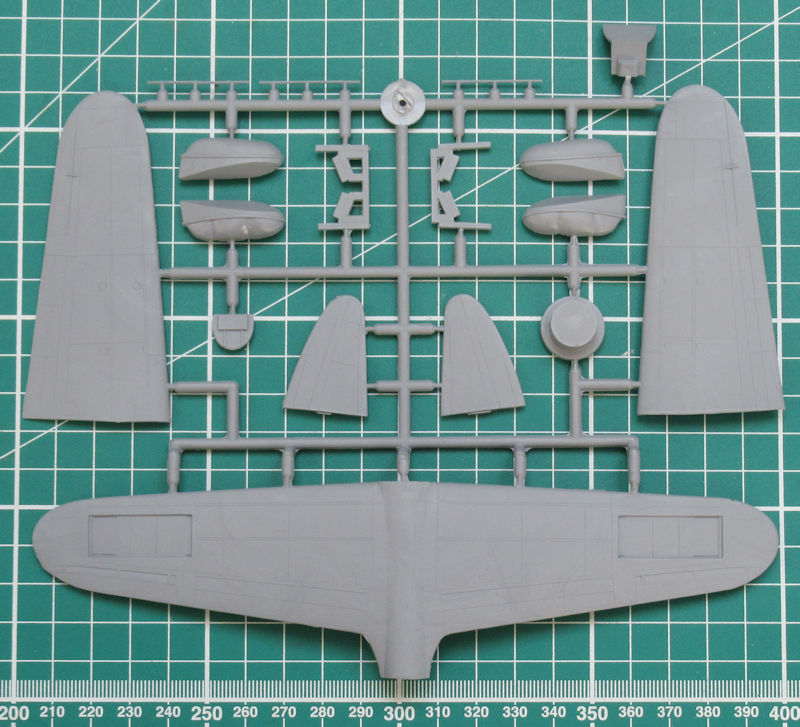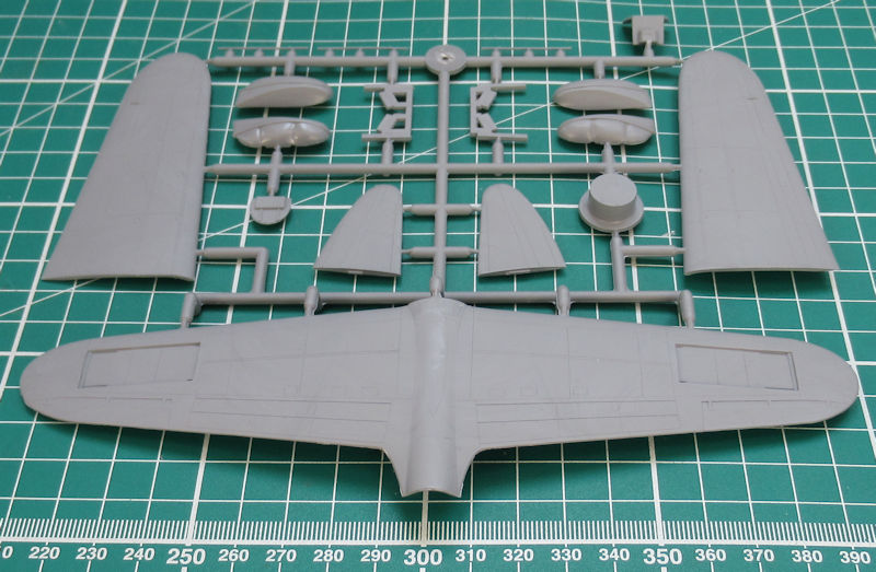 In der attraktiven aber unpraktischen Schüttbox befinden sich gut verpackt vier graue Spritzlinge mit 46 Teilen, ein Klarsichtteil, ein Decalbogen und die übersichtliche Bauanleitung. Die Teile habe feine versenkte Strukturen aber man merkt schon, dass wir es hier mit einer Wiederauflage zu tun haben. RSmodels hat sich auch in den letzten weiterentwickelt.