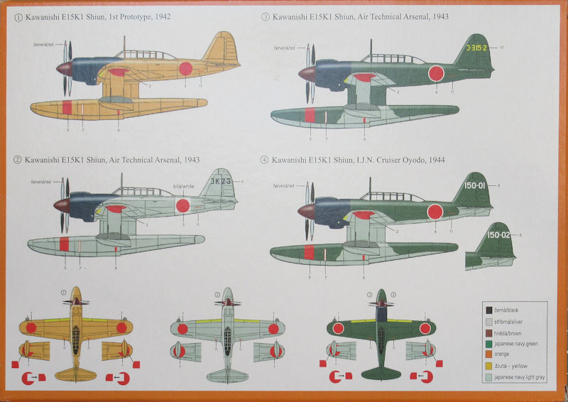 Vorbild: Die Kawanishi E15K1 Shiun war ein einmotoriges japanisches Aufklärungsschwimmerflugzeug. Es hatte bei den Alliierten den Codenamen "Norm". Die Konstruktion entstand ab 1939 im Auftrage der Kaiserlich Japanischen Marine als zweisitziges schnelles Aufklärungsflugzeug. Stationiert werden sollte das Flugzeug an Bord der neuen Kreuzer.