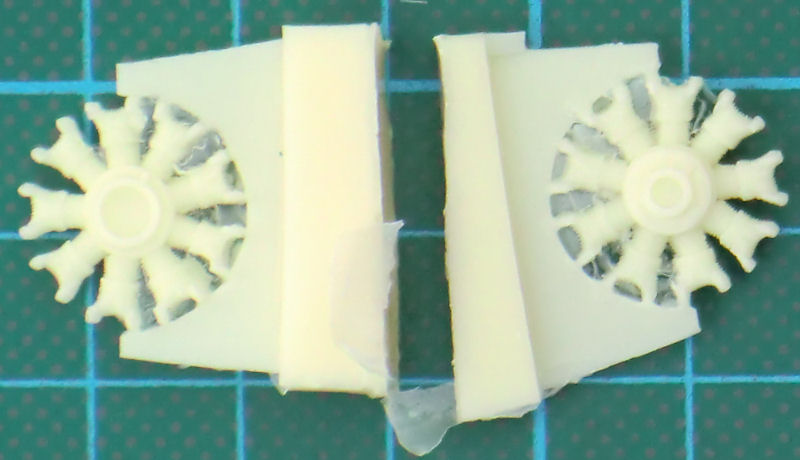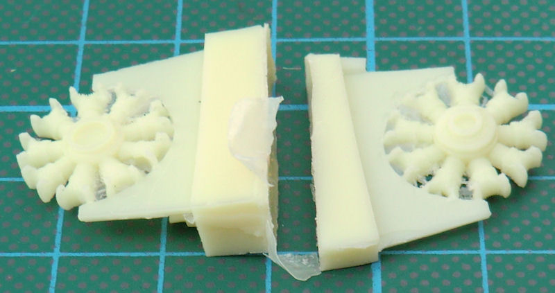 Der Bau beginnt hier mit dem gut detaillierten Cockpit. Leider gibt es hier keine aufmodellierten Sitzgurte. Hier muss man dann zur Eigenfertigung oder auf ein Zubehörprodukt zurückgreifen. Das Instrumentenbrett ist sehr plastisch detailliert. Mit Hilfe der Trockenmalmethode kann man hier ein gutes Ergebnis erreichen. Der Motor entsteht aus zwei Resinteilen und einem Getriebegehäuse aus Spritzguss. Für 1/72 reicht das für die meisten Modellbauer aus.