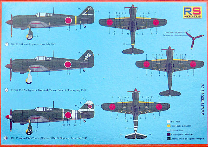 Vorbild: Die Kawasaki Ki-100 hat ihren Ursprung in der Ki-61-II-KAI und war einer der besten Jäger der Japaner im WK II. Der Erstflug war am 1. Februar 1945 und im Folgemonat ging sie schon in Dienst. Die Ki-100 war eine Notlösung. Nachdem alliierte Bombenangriffe die Fertigung des Reihenmotors Kawasaki-Ha-140 zerstört hatten, standen ca. 280 Zellen ohne Motor auf Halde. Diese wurden auf den Mitsubishi Ha-112-H-Sternmotor umgerüstet.