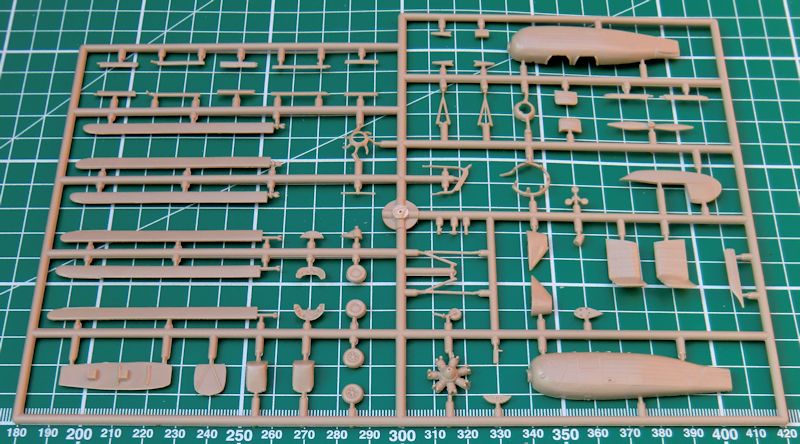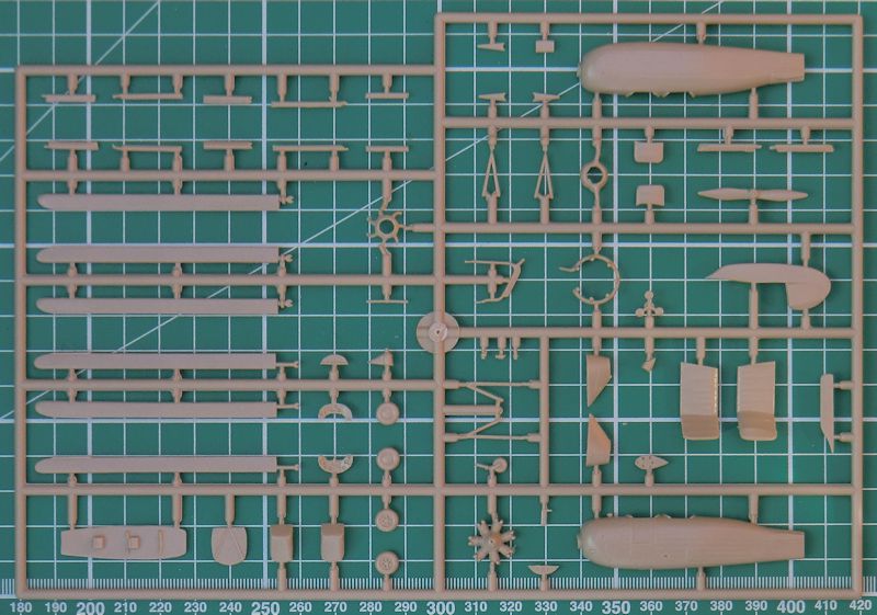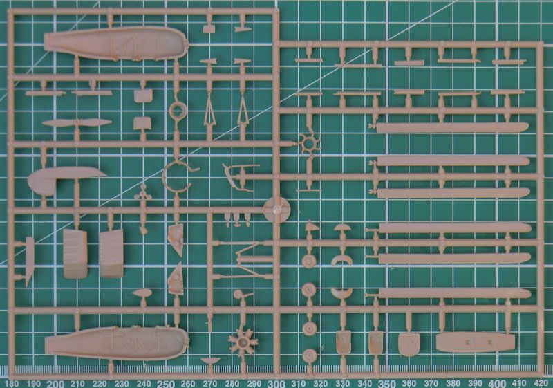 Es ist ein typischer Short-Run-Bausatz. Hier gibt es schöne Strukturen. Mir gefällt die realistische Nachbildung der Stoffbespannung am Rumpf. Im Rumpfinnen gibt es eine pfiffige Lösung. Die Gurte sind auf den beiden Sitzen aufmodelliert. Auch das restliche Cockpit ist gut ausgestattet. Die Rumpfinnenseiten sind gut strukturiert. Als Windschutz dienen dünne Folien, die man aus den Film ausschneiden muss.