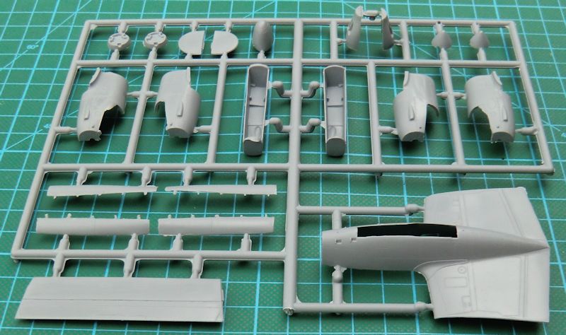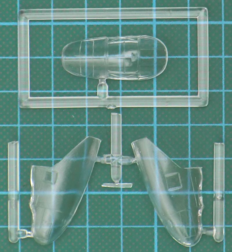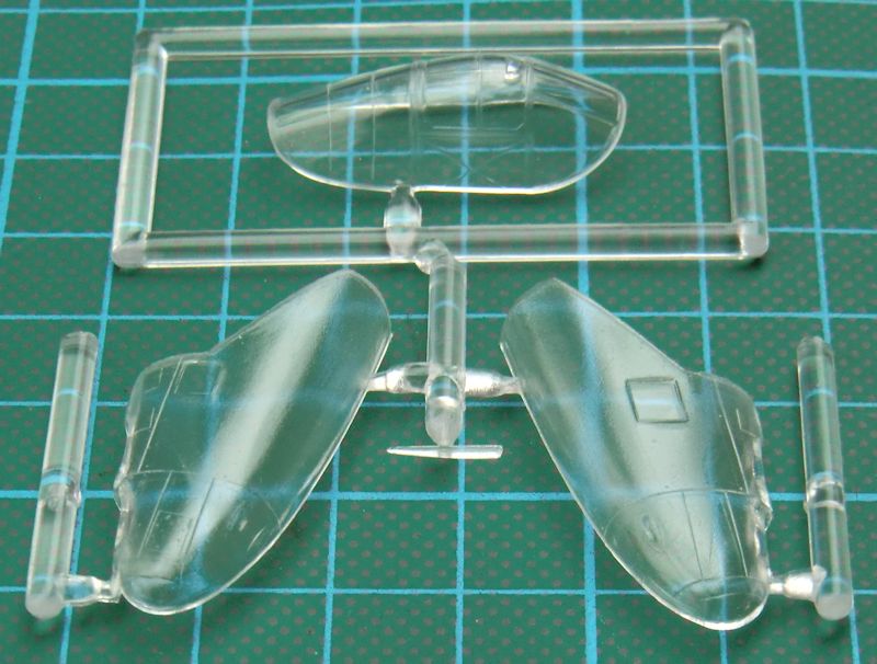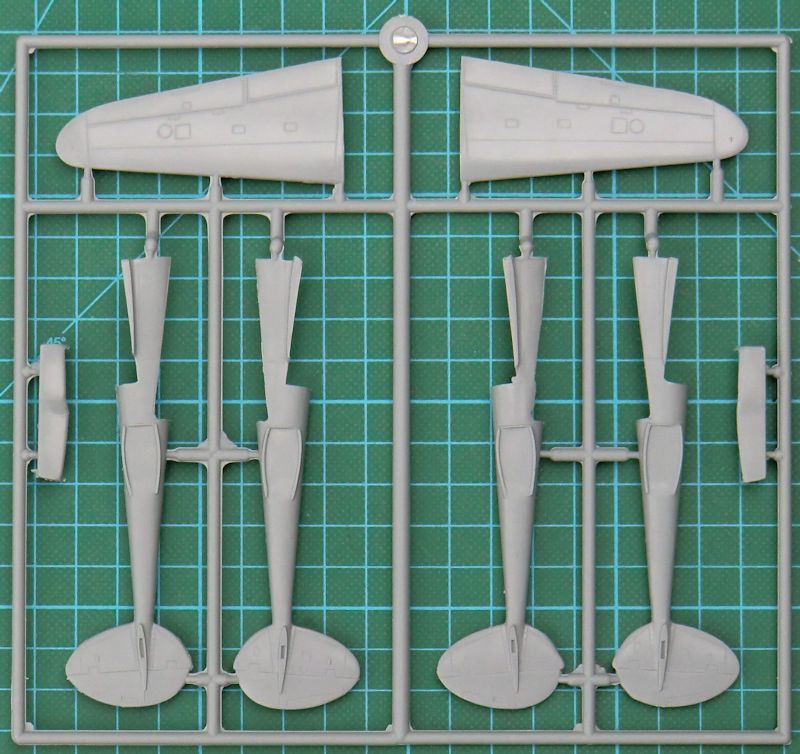 Natürlich ist auch dieses wieder ein Short-Run-Kit mit schönen Details und versenkten Strukturen. Einige Bauteile besitzen etwas Grat. Neu ist hier der neue Rumpfbug aus zwei Klarteilen. Der Hersteller hat den Bauschritt glatt vergessen. Kameras oder andere inneren Details gibt es nicht. Dafür muss die Säge angesetzt werden. Hier muss ein wenig probiert werden, denn genaue Maße liefert die Bauanleitung nicht. Das ist nach meinem Empfinden das Hauptmanko der beiden Aufklärerbausätze. Bei einer Version werden MG-Läufe eingeklebt. Ansonsten müssen die beiden Vertiefungen verspachtelt werden.