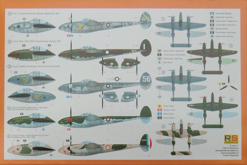 Bausatz: Robert Schneider von RSmodels hat mit der F-4 die Aufklärerversion der Lockheed P-38E in 1/72 herausgebracht. Das begrüße ich persönlich sehr, denn es gab einen berühmten französischen Piloten der das Original flog. In der attraktiven aber unpraktischen Schüttbox befinden sich gut verpackt drei hellgraue Spritzlinge mit 91 Teilen, drei Klarsichtteile, ein Decalbogen und die Bauanleitung.