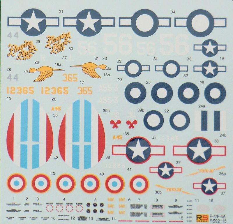 Die Farbangaben sind verbal in Englisch. Der Decalbogen ist tadellos ohne Versatz auf hellblauem Trägerpapier gedruckt. Bei der F-5A sind die ausgesuchten Bemalungsoptionen keinesfalls langweilig! Es gibt eine ausführliche Anleitung zum Anbringen der Wartungshinweise.