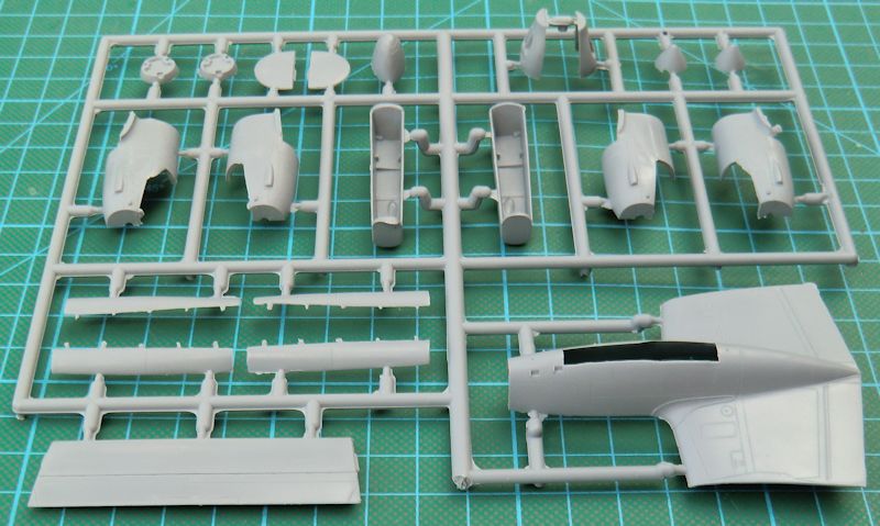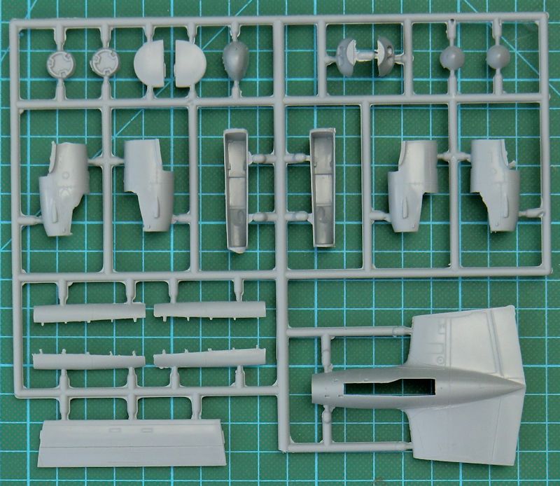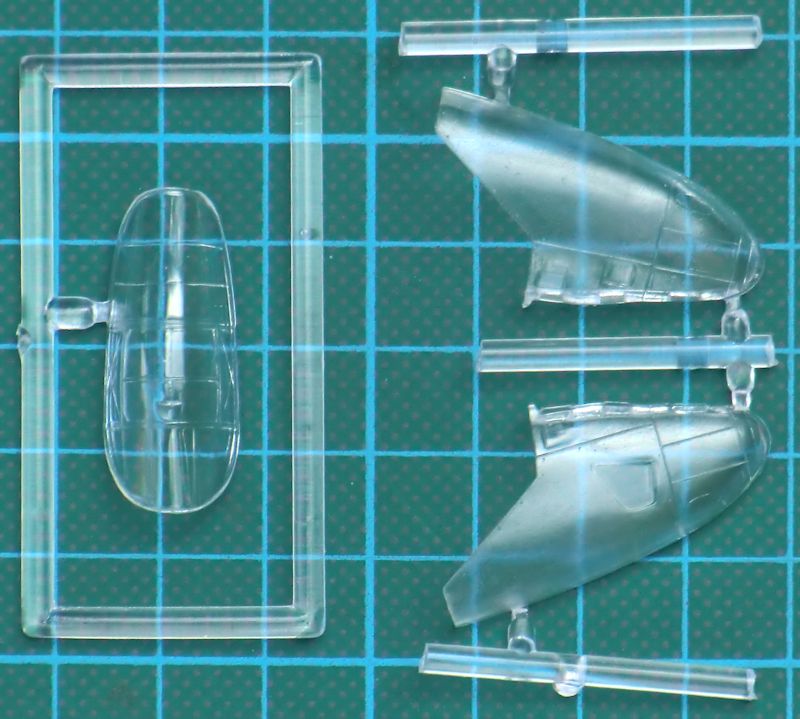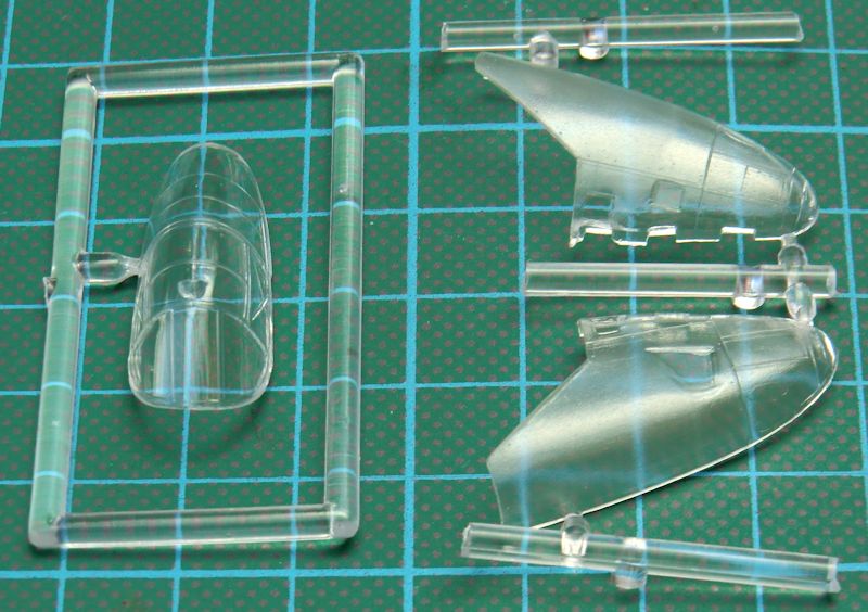 Natürlich ist auch dieses wieder ein Short-Run-Kit mit schönen Details und versenkten Strukturen. Einige Bauteile besitzen etwas Grat. Neu ist hier der neue Rumpfbug aus zwei Klarteilen. Der Hersteller hat den Bauschritt glatt vergessen. Kameras oder andere inneren Details gibt es nicht. Dafür muss die Säge angesetzt werden. Hier muss ein wenig probiert werden, denn genaue Maße liefert die Bauanleitung nicht. Das ist nach meinem Empfinden das Hauptmanko des Bausatzes.