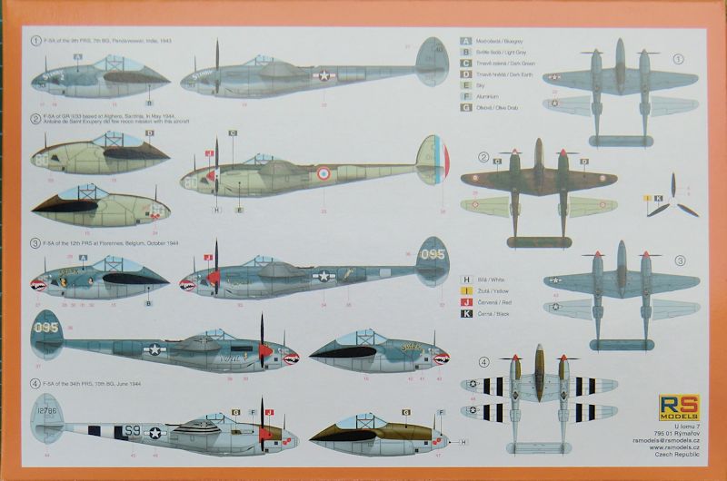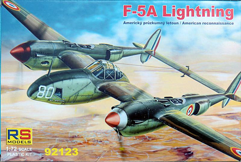 Bausatz: Robert Schneider von RSmodels hat mit der F-5A die Aufklärerversion der Lockheed P-38G in 1/72 herausgebracht. Das begrüße ich persönlich sehr, denn es gab einen berühmten französischen Piloten der das Original flog. In der attraktiven aber unpraktischen Schüttbox befinden sich gut verpackt drei hellgraue Spritzlinge mit 91 Teilen, drei Klarsichtteile, ein Decalbogen und die Bauanleitung.