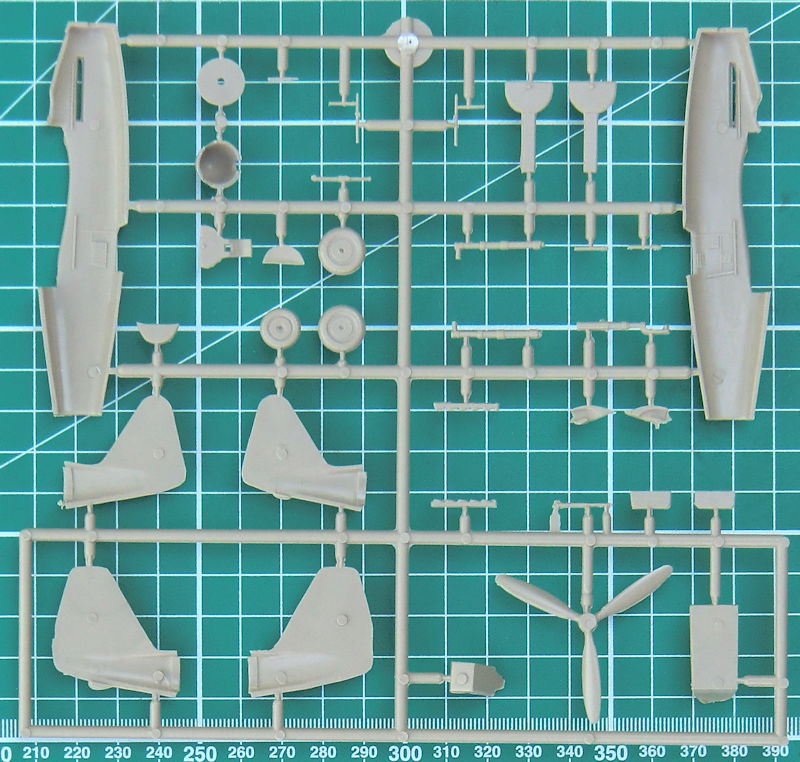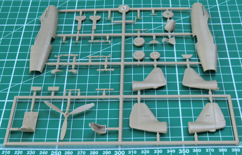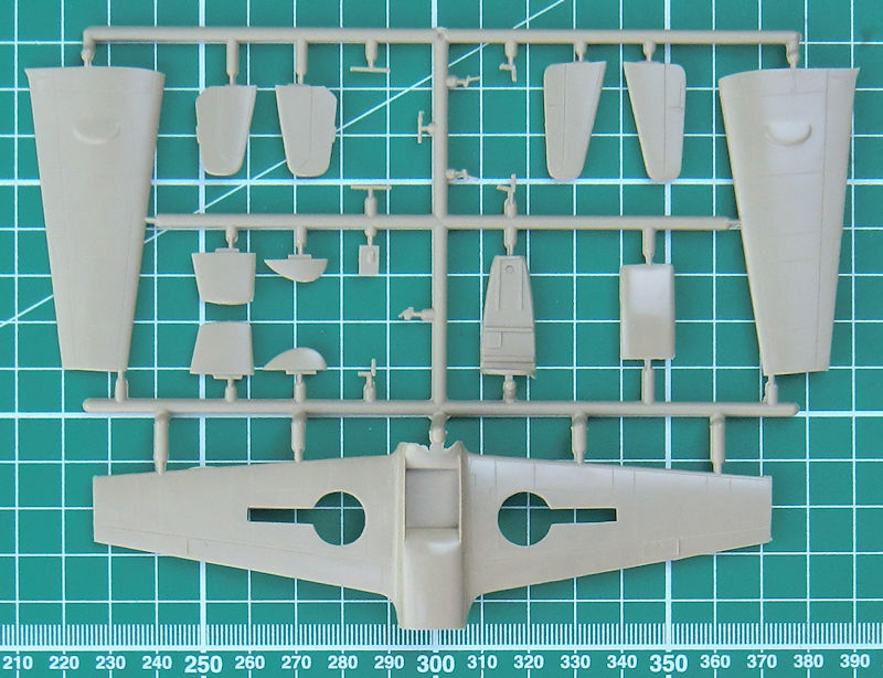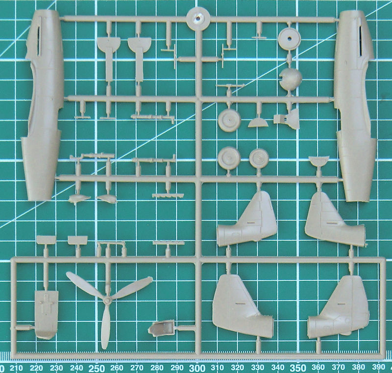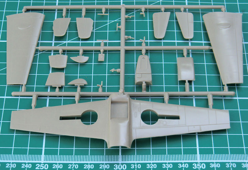 Es handelt sich um einen typischen Short-Run-Bausatz mit sauber abgespritzten Teilen. Weiterhin gibt es feine versenkte Strukturen. Ein paar Anternativteile wandern in die Restekiste. Die beiden Rumpfhälften haben innen im Cockpitbereich schöne Strukturen. Das Instrumentenbrett muss bemalt werden. Leider gibt es keine Sitzgurte. Hier muss man dann auf z.B. die Steel-Gurte von eduard zurückgreifen.
