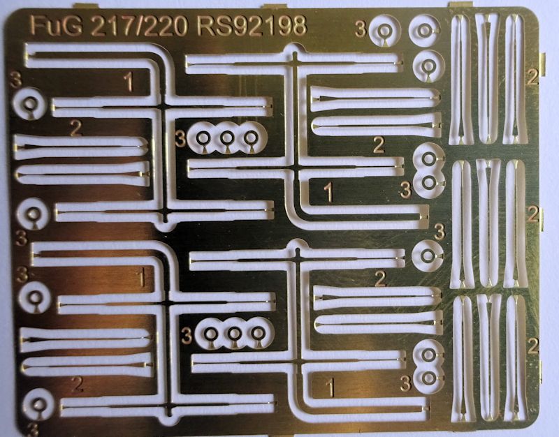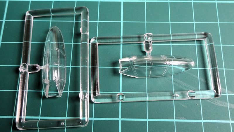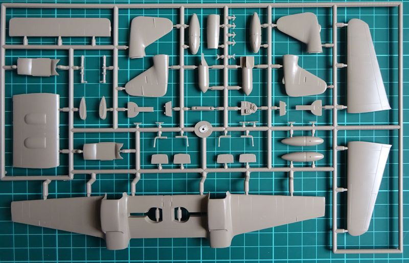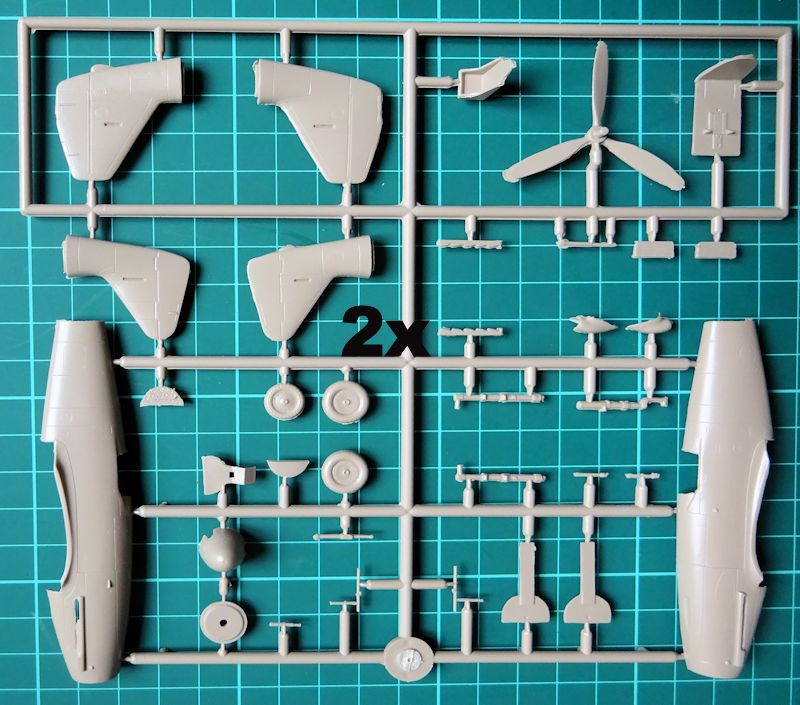 Die Gravuren und der Guss sind sauber ausgeführt. Für ein Projekt sind die Details ausreichend, es fehlen nur die Sitzgurte. Vielleicht nimmt sie RS ja einmal in seine Decals auf. Die Rahmen für die Rümpfe und die äußeren Tragflächen gibt es zweimal.
