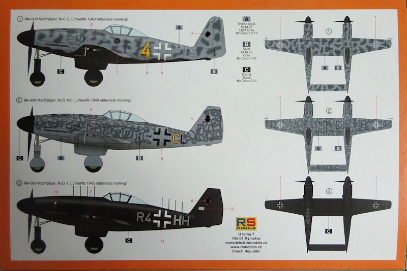 Bemalung: Die Abziehbilder sind sauber und versatzfrei gedruckt. Die Bemalungshinweise für drei Maschinen der Abteilung "so hätte es aussehen können" befinden sich auf der Kartonrückseite.