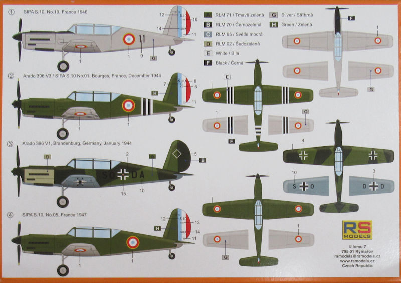 Bausatz: Die Arado Ar 396 erschien in den 1980er Jahren bei HUMA im Maßstab 1/72. Allerdings liegen die HUMA-Formen aktuell ungenutzt herum und so hat Robert Schneider die Chance für einen neuen Bausatz genutzt und gleich noch den französischen Ableger SIPA S. 10 mit umgesetzt.