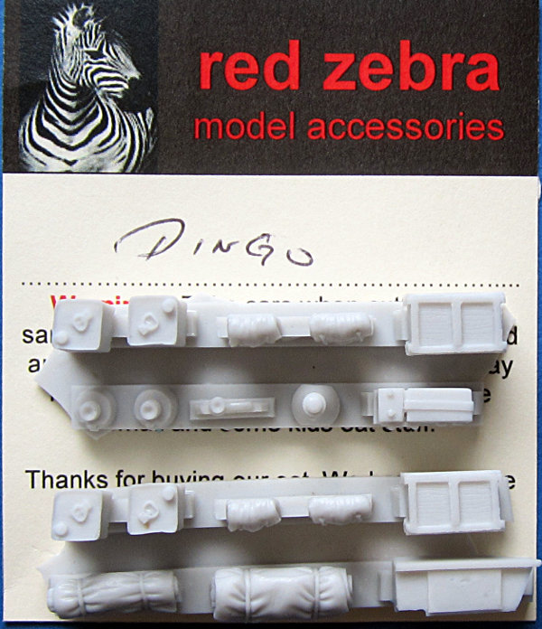 Für den Dingo Mk. II von Tamiya (First Look) bietet Paul Wade diesen kleinen Satz. Dem Bausatz liegen ganz ordentliche Besatzungsmitglieder bei und auch etwas Zubehör ist enthalten. Aber es fehlt das Funkgerät und im Einsatz hatten die Fahrzeuge auch etwas mehr "Gerödel" an Bord. Dieser Satz bietet nun einen einfachen Anfang für das Ergänzen des Dingo.