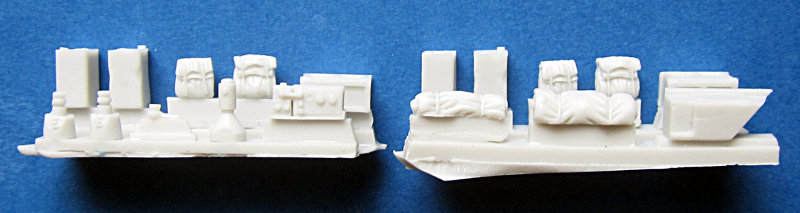 An einem doppelt vorhandenen Anguss befinden sich zwei Kanister, zwei Taschen und eine Holzkiste, diese Teile können frei auf dem Modell drappiert werden. Auf einem weiteren Gussblock befinden sich Antennenfüße und das Funkgerät. Schließlich enthält der letzte Anguss das Gestell für das Funkgerät und zwei Planen. Leider gibt es diesmal kein Foto des Modells mit diesen Anbauteilen.