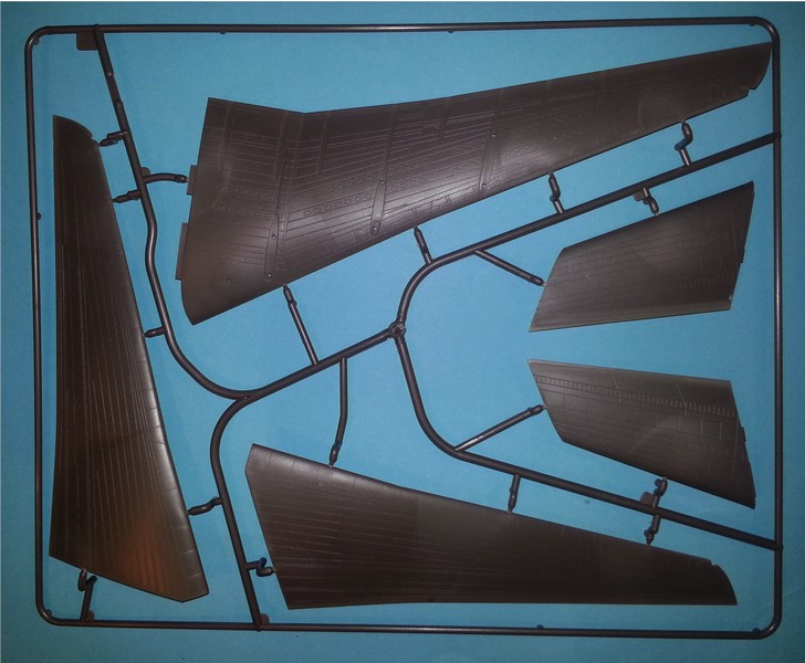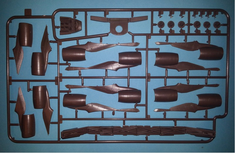Ohne jetzt zu sehr ins Detail zu gehen, die Abspritzung insgesamt macht einen sehr guten Eindruck. Die Gravuren sind fein. Ich habe keine Auswerferstellen im Sichtbereich, z.B. auf der Rippenstruktur gefunden. Im Bereich des Fahrwerkes werden viele Details gezeigt. Für die feinen Streben empfiehlt sich ein Einsatz einer feinen Säge zu Lösen aus dem Rahmen, um Bruch zu vermeiden.