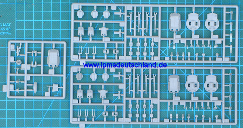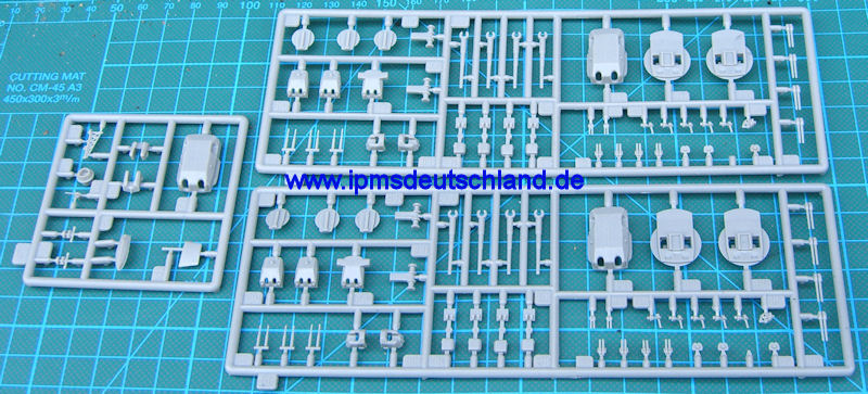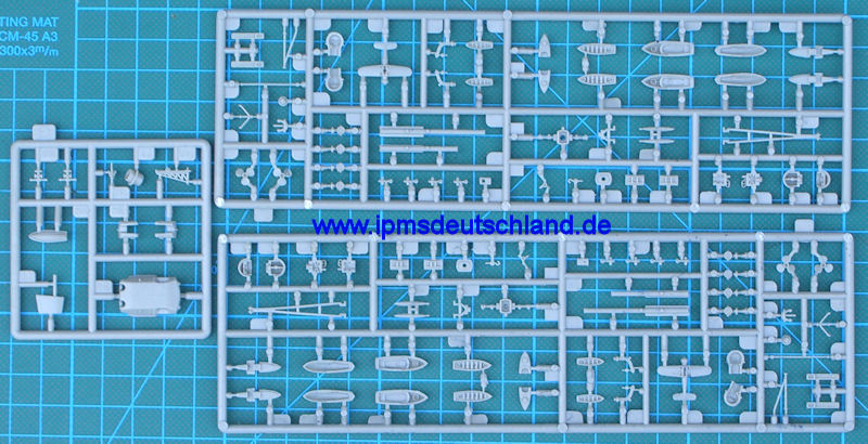 Insgesamt gibt es neben den beiden Rumpfhälften zehn Spritzlinge voll mit Bauteilen.