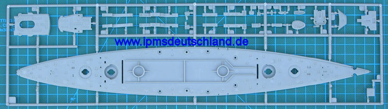 Die Bismarck ist eine Bausatzneuheit in 1/700. Es handelt sich hierbei um Spritzlinge aus einem sog. Testshot. Die Teile dienen nur der Übersicht. Details werden z.T. noch geändert. Im Prinzip hat Revell die Daten des 350er Bausatzes auch für die „kleine Bismarck“ genutzt. Für manch einen 700er Waterline-Fan ist es schade, dass nicht so einfach ein Wasserlinienmodell gebaut werden kann. Immerhin hat Revell die Arado Ar 196 Bordflugzeuge nicht vergessen.