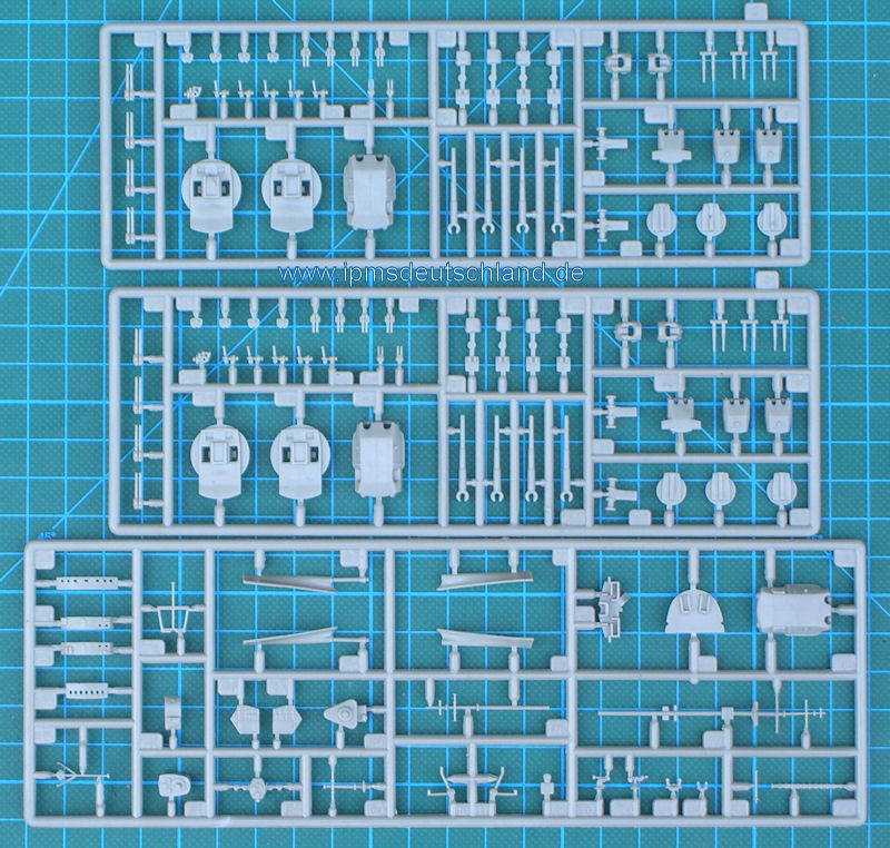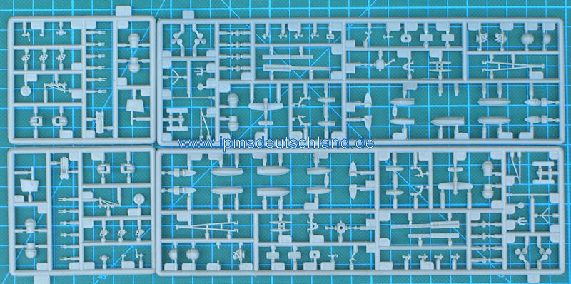 Insgesamt gibt es neben den beiden Rumpfhälften zehn Spritzlinge voll mit Bauteilen.