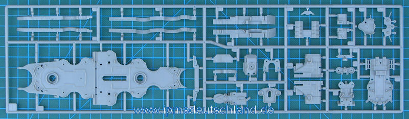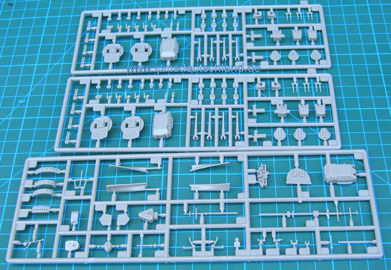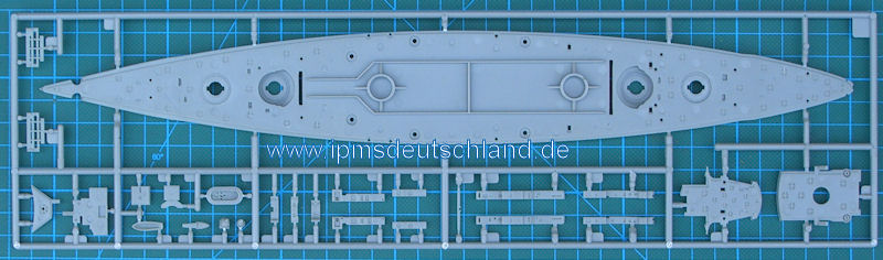 Die Tirpitz ist eine Bausatzneuheit in 1/700 und erscheint einen Monat nach der Bismarck in gleichem Maßstab. Es handelt sich hierbei um Spritzlinge aus einem sog. Testshot. Die Teile dienen nur der Übersicht. Details werden z.T. noch geändert. Im Prinzip hat Revell die Daten des 350er Bausatzes auch für die „kleine Tirpitz“ genutzt. Die Unterschiede zur Bismarck wurden gut umgesetzt.