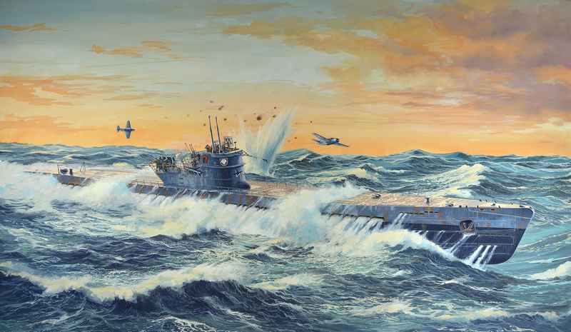 Vorbild: Die U-Boote des Typ IX waren immer im Schatten der berühmten Typ VII-Boote. Sie bildeten als Langstrecken-U-Boote gemeinsam mit den Mittelstrecken-U-Booten das Rückrat der U-Boot-Waffe der deutschen Kriegsmarine. Ab 1935 entstand der neue Typ auf Basis des Versuchstyps IA. Weiterhin wurden die Erkenntnisse der Langstrecken-U-Boote der kaiserlichen Marine genutzt. Das Zweihüllenboot erhielt einen aufgeladenen Neunzylindermotor mit 2400 PS. Die Wasserverdrängung des aufgetauchten Bootes vom Typ IXC lag bei 1140 Tonnen. So betrug die Länge 76,8 Meter. Aufgetaucht erreichte das Boot eine Geschwindigkeit von 18,3 Knoten. Unter Wasser waren es 7,3 Knoten. Immerhin konnten bei einer Reisegeschwindigkeit von 10 Knoten 12000 Seemeilen erreicht werden.