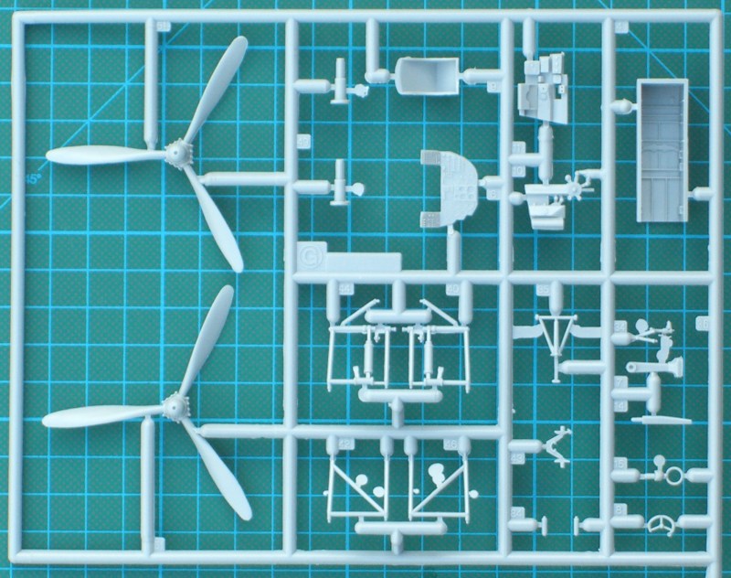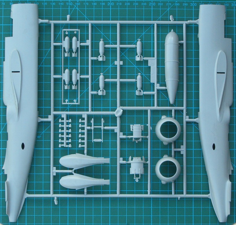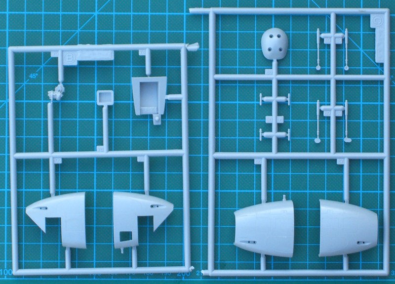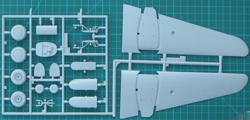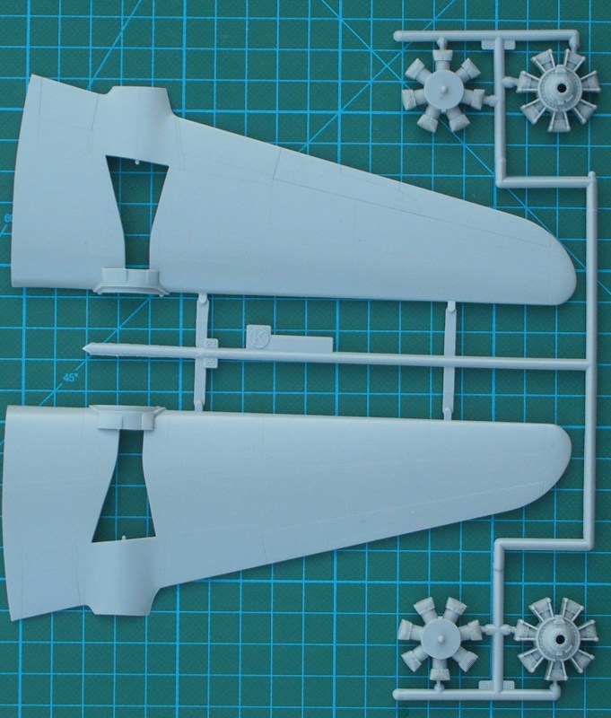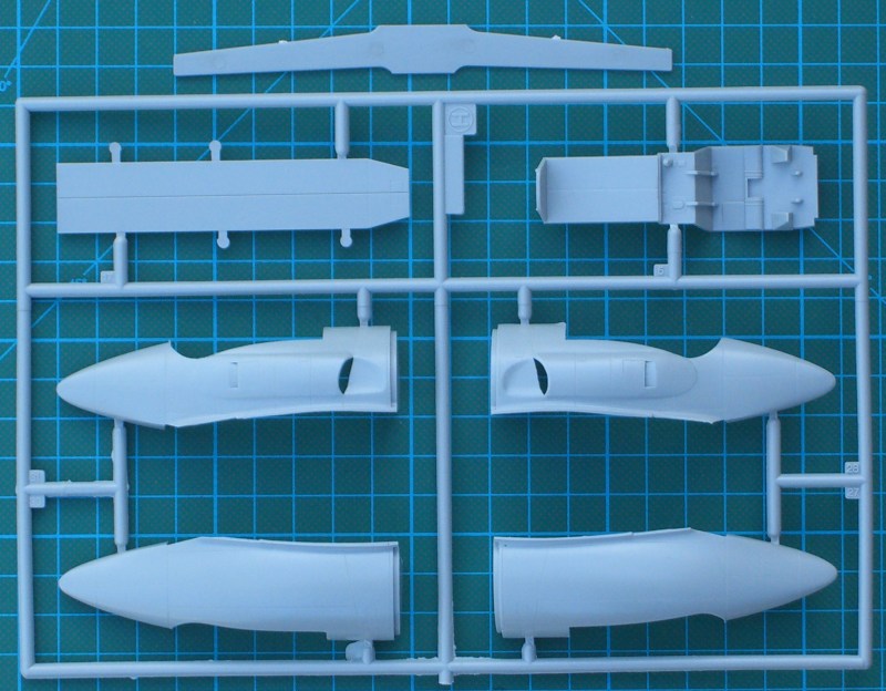 Wer den Bausatz nicht kennt, dem sei gesagt: feine versenkte Gravuren und ordentliche Details. Für das Cockpit gibt es eine ordentliche Grundausstattung und hier sollten zumindest die Sitzgurte ergänzt werden. Die Motoren sehen gut aus. Das Profil der Reifen ist etwas zu grob und dazu noch erhaben. Dafür sind sie aber leicht abgeplattet.