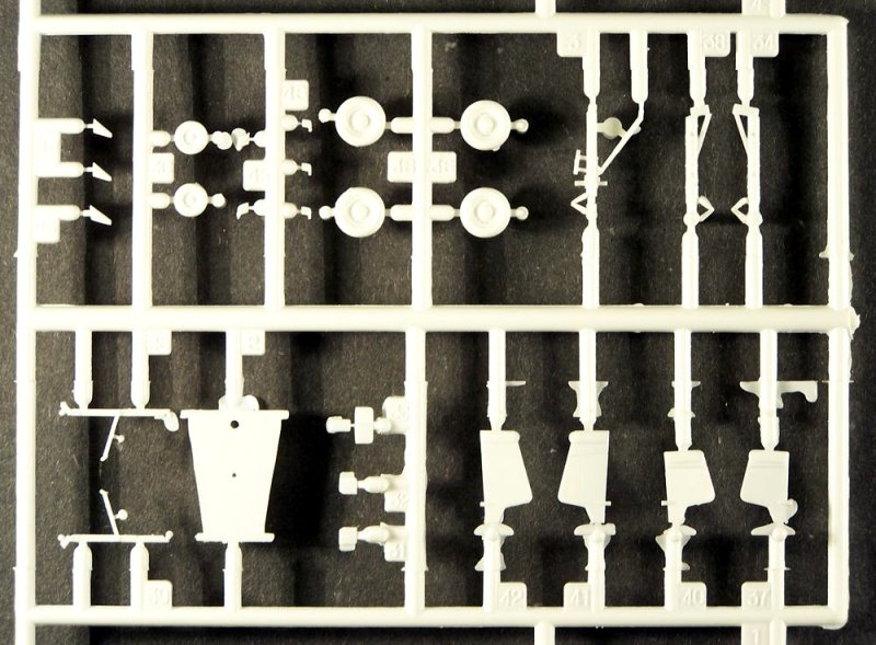 Ebenfalls ein nicht korrigiertes Manko ist, dass die kleinen Führungsboxen für das Einkleben des Hauptfahrwerkes an den Tragflächen zu groß sind für die Passzapfen desselben. Da muss man beim Bauen aufpassen.